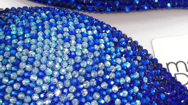 Stand out with this Blue Diamond Competition Bikini, featuring a fabulous blend of dark blue, sapphire AB and light sapphire AB crystals on a pretty blue fabric.