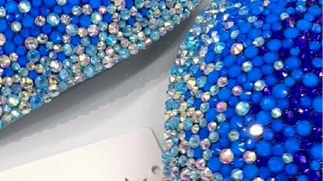 This stunning Midnight Sapphire Figure Suit is beautifully crystalled with an ombre blend of crystal AB, black and 3 shades of blue crystals on a blue fabric.