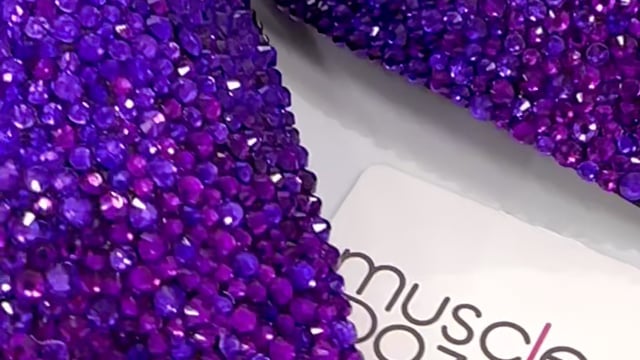 This Midnight Violet Figure Suit features an exciting crystal combination using violet, blue-purple and jet black crystals on an elegant black fabric.