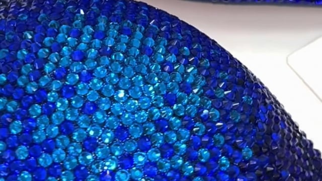 Be the definition of chic in this Ocean Sapphire Figure Suit, adorned with dark blue, sapphire blue and capri blue crystals on blue fabric.
