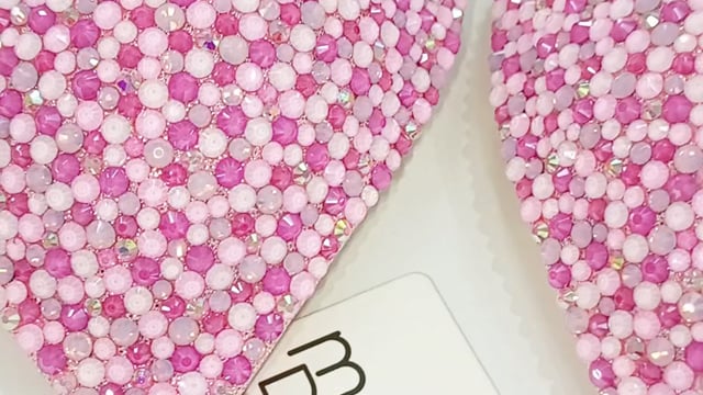 This gorgeous Pink Cherry Blossom Figure Suit is decorated with an exciting mix of crystal AB and 4 different shades of pink crystals on a light pink fabric.