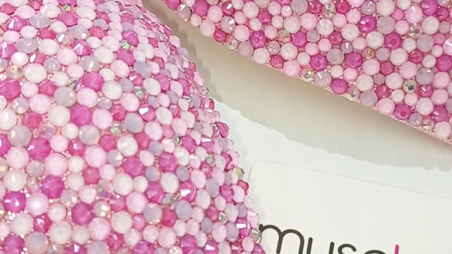 This Pink Cherry Blossom Wellness Suit is decorated with a super cute mix of crystal AB combined with 4 different shades of pink crystals on a light pink fabric.