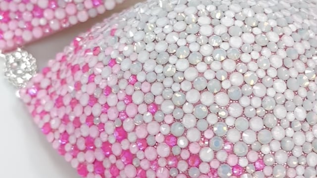 This Pink Frost Wellness Suit is exquisitely decorated with a mix of white opal, white, pink, neon pink and neon rose AB crystal colors on a light pink fabric.