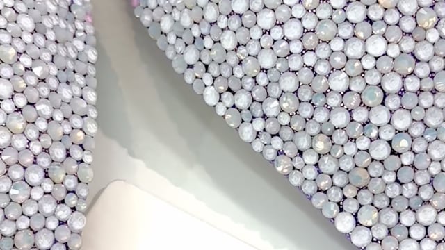 This glamorous Purple Frost Wellness Suit is decorated with a striking blend of white opal, white, neon purple AB, neon violet and purple crystals on a light purple fabric.