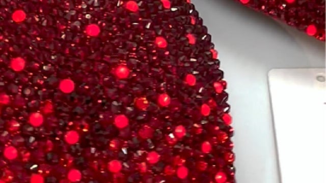 This ravishing Red Velvet Wellness Suit is fully decorated with 4 shades of red crystals including neon highlights, on a red spandex fabric.