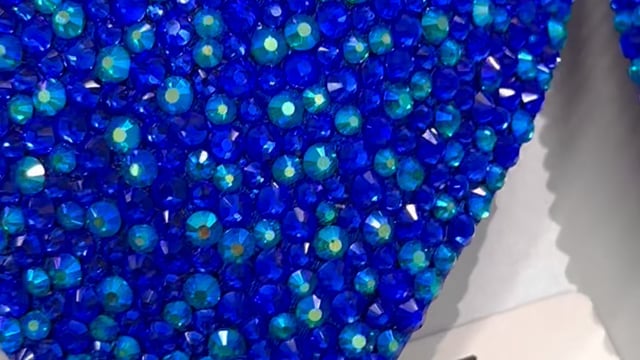 This fabulous Royal Blue Wellness Suit features a striking combination of blue-green AB and sapphire crystals on a classic royal blue fabric.