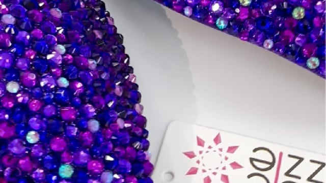 This glamorous royal violet competition bikini is decorated with a beautiful blend of 4 different blue and purple crystals on royal purple fabric.