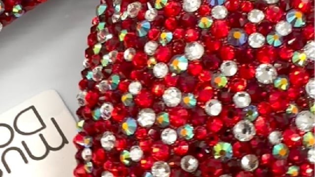 This stunning ruby red competition bikini is embellished with a striking blend of clear, clear AB, red and dark red crystals on a ravishing red fabric.
