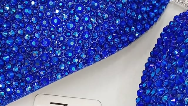 This luxurious Sapphire Blue Figure Suit is lavishly decorated with sapphire AB crystals on a royal blue fabric.
